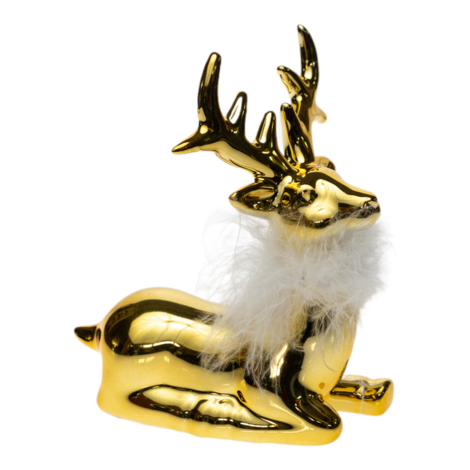 ΧΡΙΣΤΟΥΓΕΝΝΙΑΤΙΚΟΣ ΔΙΑΚΟΣΜΗΤΙΚΟΣ ΤΑΡΑΝΔΟΣ ΚΕΡΑΜΙΚΟΣ ΧΡΥΣΟΣ ΜΕ ΠΟΥΠΟΥΛΟ ΛΕΥΚΟ 15,5Χ7,1Χ16,9ΕΚ