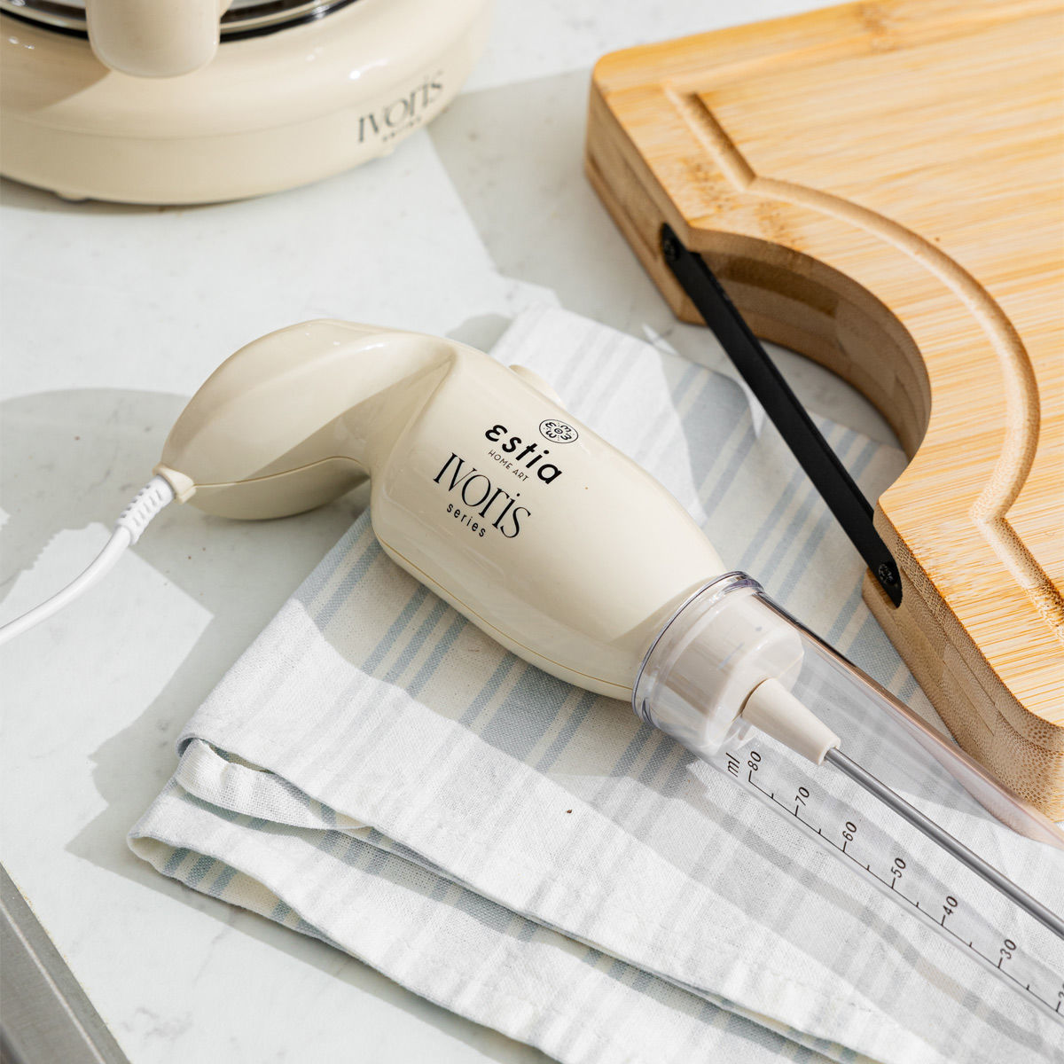 Η φραπεδιέρα χειρός Ivoris συνδυάζει την ευελιξία με την ισχύ, καθιστώντας την ιδανική για την παρασκευή καφέ, αφρόγαλα, milkshake, και σάλτσες. Με ισχύ 25W και εργονομική λαβή, αυτή η φραπεδιέρα προσφέρει άνεση και αποδοτικότητα στη χρήση. Διαθέτει μακρύ αναδευτήρα 14.5cm από ανοξείδωτο ατσάλι, που εξασφαλίζει τέλεια ανάμιξη και προστατευτικό καπάκι που λειτουργεί και ως δοσομετρητής 80ml, για ακριβή μέτρηση των υλικών. Ανανεώστε την κουζίνα σας με τις συσκευές Ivorisπου εγγυώνται υψηλή απόδοση και μοντέρνο σχεδιασμό.