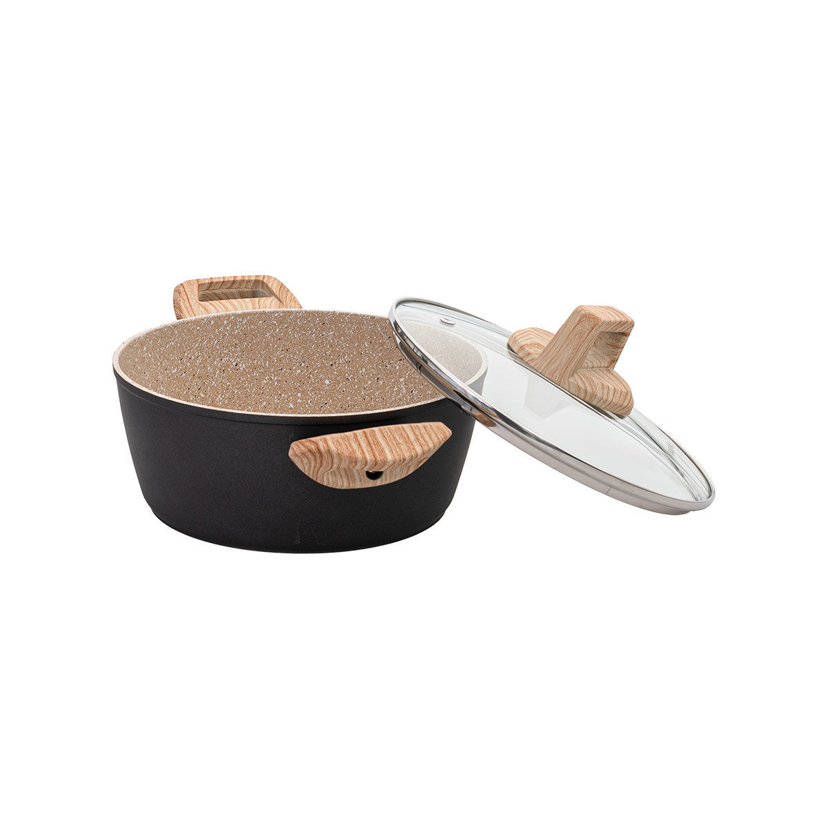 Ανακαλύψτε τις κατσαρόλες Earth Series ιδανικές για κάθε κουζίνα και νοικοκυριό. Κατασκευασμένες από πρεσσαριστό αλουμίνιο πάχους 3.0 mm για άψογη απόδοση σε κάθε χρήση. Προσφέρουν ομοιόμορφη κατανομή της θερμοκρασίας για τέλειο ψήσιμο και γρήγορο μαγείρεμα. Η τριπλή μαρμάρινη αντικολλητική επίστρωση που διαθέτουν προσφέρει εντυπωσιακές αντικολλητικές ιδιότητες και ενισχυμένη ανθεκτικότητα στα γδαρσίματα. Με γυάλινο πυράντοχο καπάκι που περιβάλλεται από ανοξείδωτο στεφάνι και εργονομικές αντιολισθητικές λαβές από βακελίτη που παραμένουν κρύες κατά το μαγείρεμα για άνετο κράτημα.