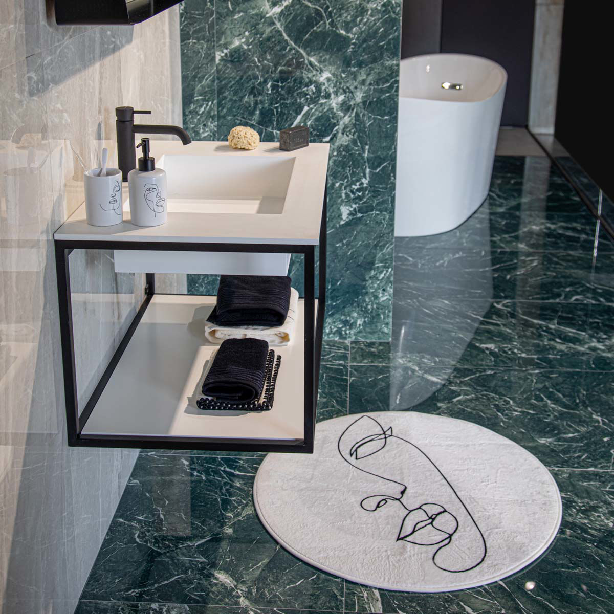 Η σειρά μπάνιου Line Art προσφέρει έναν συνδυασμό απλότητας και ομορφιάς στον χώρο σας. Περιλαμβάνει ποτηράκι, αντλία, ταπέτο καθώς και κουρτίνα μπάνιου με μίνιμαλ αισθητική, κομψές γραμμές και ουδέτερα χρώματα, προσφέροντας έναν μοντέρνο αέρα στο μπάνιό σας.